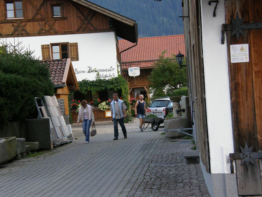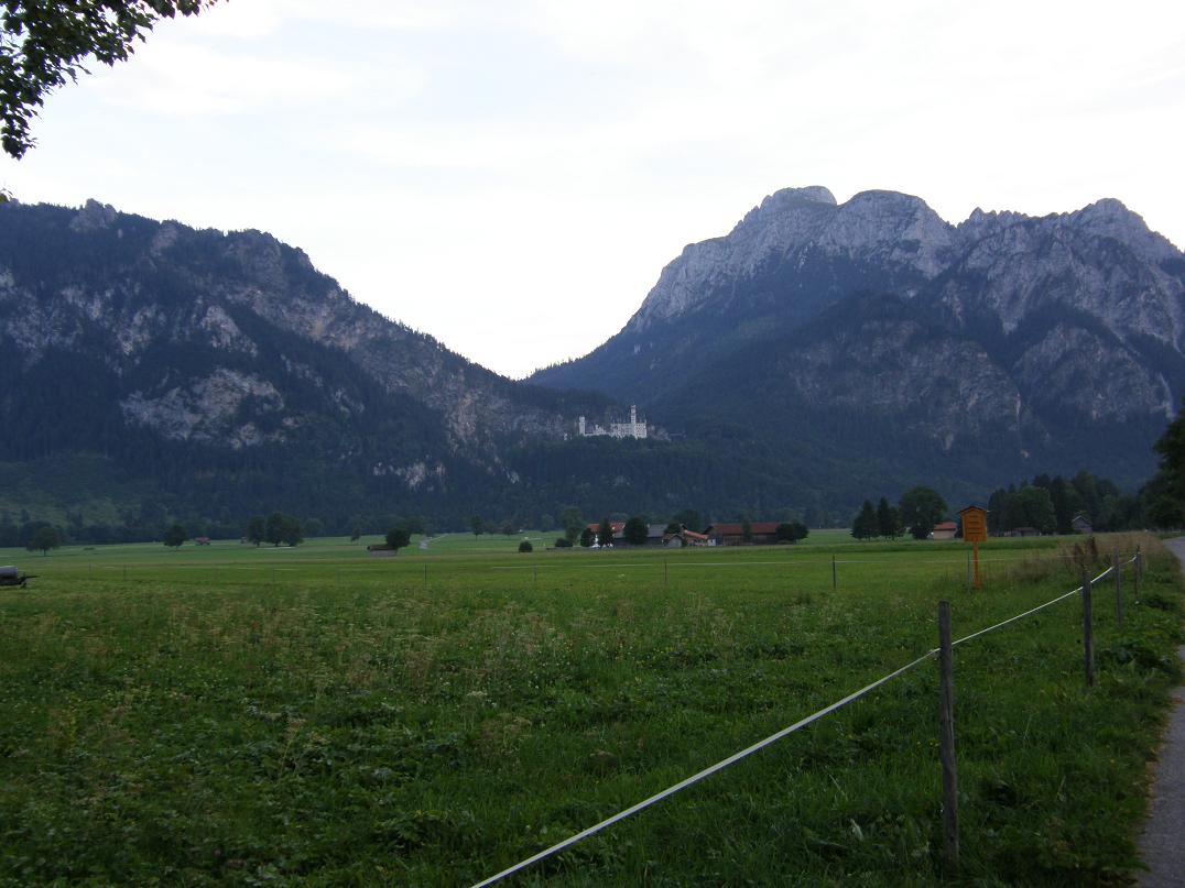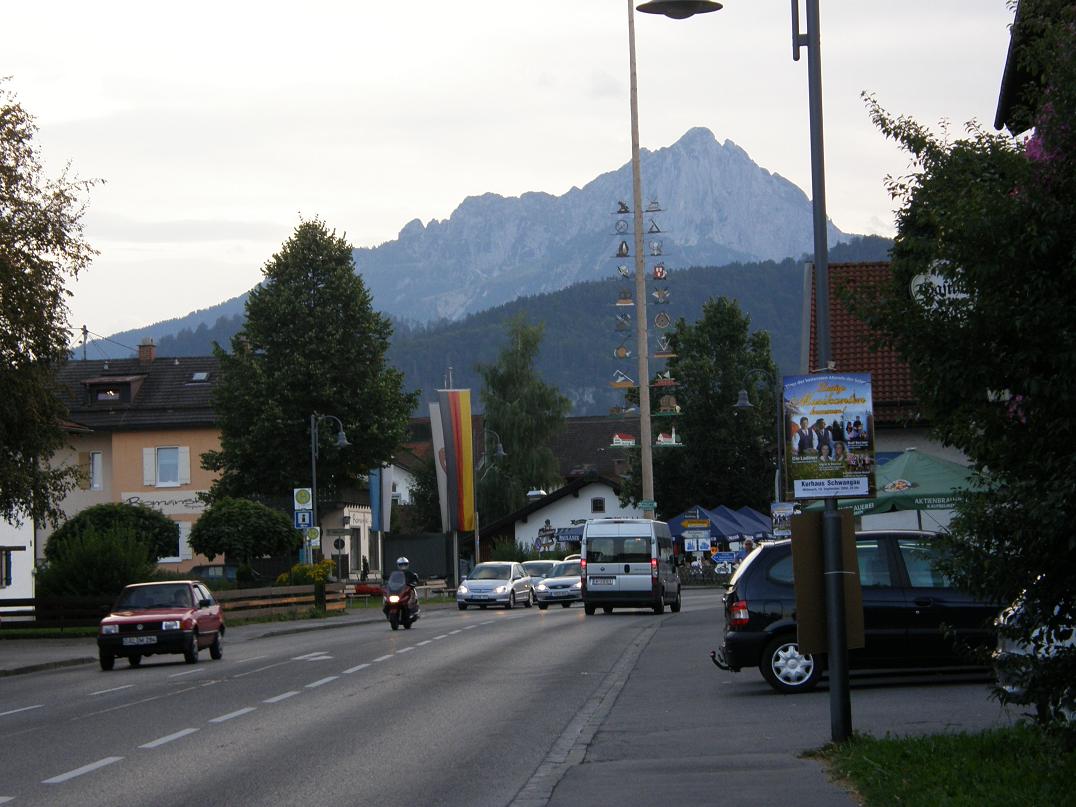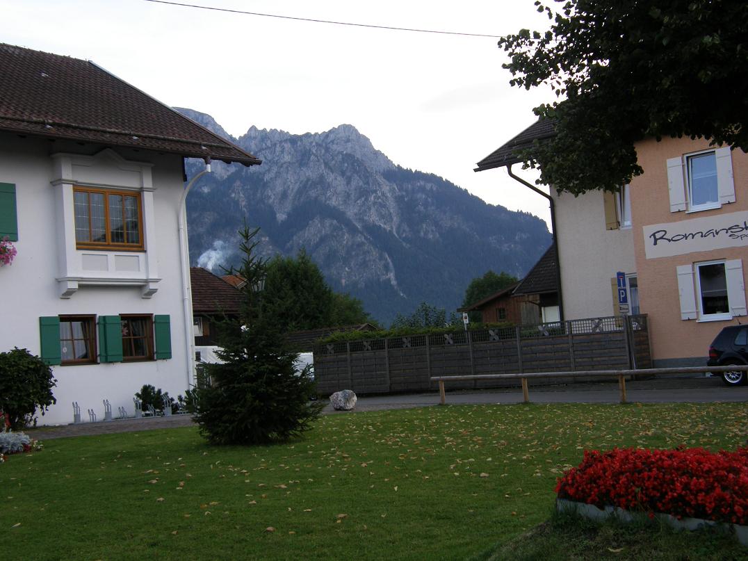 Ну что ж, продолжим. Часть фото я все-таки загрузила в свой альбом ( см. ссылку на аватаре). Это кое-какие фото, сделанные прямо из автобуса. Не все, конечно. Ну а самые основные, сделанные на местах, постараюсь прямо сюда скинуть. Итак. Электричкой до Марктобердорфа. Это первая пересадка, на автобус до Фюссена. Кстати, там должен был идти тоже поезд, но по Bahn.de( сайт железных дорог Германии), я уяснила, что с 31 августа по 15 сентября жел.дорожный вокзал в Фюссене не будет работать по техническим причинам. Поэтому маршрут был с пересадкой на автобус. Выйдя на станции, я сразу же увидела тройку автобусов, водитель одного просто громко говорил:Фюссен…Фюссен.. Значит, это – мой. Вещи – в багажное отделение, сумку в руки – и к окошку. Поехали….. Наконец, вокруг кое-что изменилось, вдали появились горы, к которым я так стремилась. Фюссен – небольшой город, там есть свои достопримечательности, но об этом чуть позже, а пока – я на вокзале в Фюссене. Убедилась, что поезда, действительно, не ходят. Прошлась по остановкам автобусов. Там на каждой остановке – номера автобусов и ТОЧНОЕ расписание их движения. Списала на будущее кое-что, запаслась распечаткой расписания до Вайльхайма ( для будущей поездки в Мюнхен). А тут и мой автобус подошел. Опять кассовый аппарат на входе, стоимость – 2 евро до Ратхауса. И опять за окном – аккуратные домики Фюссена, велосипеды, припаркованные прямо на улице на специальных стоянках, узенькие, всего в две полосы, дороги,по которым виртуозно разъезжаются машины и автобусы… Последний домик городка – а впереди – горы…. Эти рейсы из Фюссена рассчитаны на приезжих с электричек, чтобы довезти их до замков Нойшванштайн и Швангау, поэтому я увидела, куда мне придется завтра идти, увидела сам зАмок, вдалеке, правда, но… А потом – и сама деревенька Швангау… Первое – это были коровы, стоящие, лежащие и пасущиеся на небольших участочках, огороженных простыми ленточками, спокойно лежащие и жующие свою жвачку… Все поля здесь поделены на какие-то клочочки, как одеяло лоскутное. Но все участочки аккуратно или подкошены или скошены вообще. Стало как-то поспокойнее, словно родное что-то увидела. Потом пошли домики. Иначе их нельзя назвать. Это как игрушки. В основном – двухэтажные, беленькие, крыши – красно-кирпичные, и все – в цветах: и балкончики, и подоконники, и палисаднички перед домом. Вот и Ратхаус. Это – Администрация села. Здесь я потом запаслась рекламками, буклетиками о том, что можно посмотреть и какие мероприятия планируются. Теперь мне надо найти свой отель. Судя по тому, что у меня отложилось в памяти (спасибо спутниковой карте!), он должен быть чуть дальше, слева, то есть, надо перейти дорогу. Подхожу к светофору, он только что загорелся красный для меня. Жду… Светофор отключается вообще, и машины едут и едут… Первая мысль – сломался! Потом рядом появляется девушка, весело улыбается и нажимает на пластинку на столбе светофора. Заработал! И через минуту мы с ней уже переходим… Все ясненько. Запомним. А вот и мой отель, совсем близко от остановки. В глубине сада со столиками – трехэтажное, но невысокое здание, а перед ним вывеска - Отель Шванштайн. Я – на месте. Я, конечно, не знаю, как я выглядела после почти трехдневного путешествия, но мне с вежливой улыбкой вручили ключи, и я первым делом залезла в душ. Вот это было истинное блажен