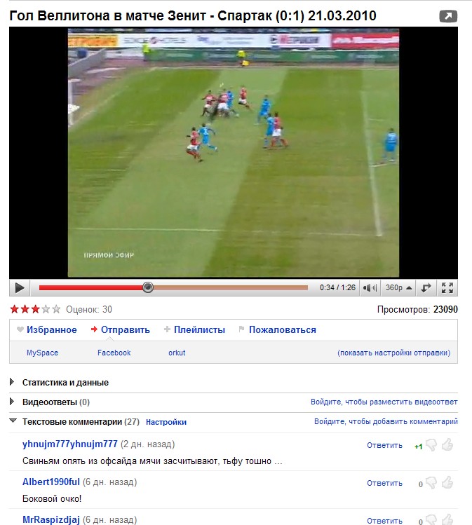 3. Матч «Спартак» - «Локомотив» (дата 28.03.2010) а). на 3 минуте - помощник судьи правильно зафиксировал положение «вне игры» у игрока команды «Локомотив»; б). на 5 минуте - судья правильно не назначил 11-метровый удар в ворота команды «Спартак»; в). на 18 минуте - помощник судьи правильно не зафиксировал положение «вне игры» у игрока команды «Спартак», забившего гол в ворота команды «Локомотив». Жалоба ФК «Локомотив» признана необоснованной. Апелляция судьи на оценку инспектора признана обоснованной. Полностью здесь. вот Саныч не бережёшь ты нервные клетки некоторых Гер... а как врач обязан же... |