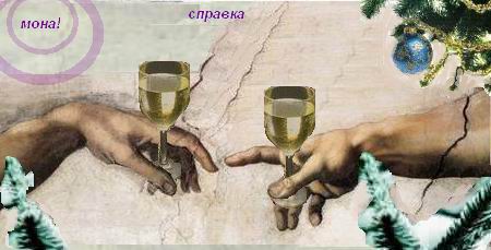 У хороших людей зажигаются яркие елки, У хороших людей за столами тепло и светло. Нехороших людей сьели страшные серые волки, И следы тех волков новогодней пургой замело. По веселой земле ходят добрые Деды Морозы, Из огромных мешков непрерывно подарки дарят. Разноцветными бусами сделались детские слезы, И на лапах еловых нарядно и ярко горят. И не то чтобы пьян, но шампанского брызгами взвинчен, Заправляет хозяин научно-разбойничий тост. И смеется в ответ со стены Леонардо да Винчи, Словно самый ученый на этой земле Дед Мороз. Прославляю тебя, новогодняя пестрая полночь, В серпантинах твоих, в мишуре конфетти и конфет. А когда мы устанем, придет неизменно на помощь Незнакомого года загадочный первый рассвет. Побледнели в лучах фонари на притихнувшей елке, И, свое отгостив, я на первый троллейбус бреду. Нехороших людей уже скушали серые волки, И следы тех волков замело еще в прошлом году. http://www.playcast.ru/uploads/2008/12/30/788443.mp3 -------------------- кто не любил тот и не жил и не дышал