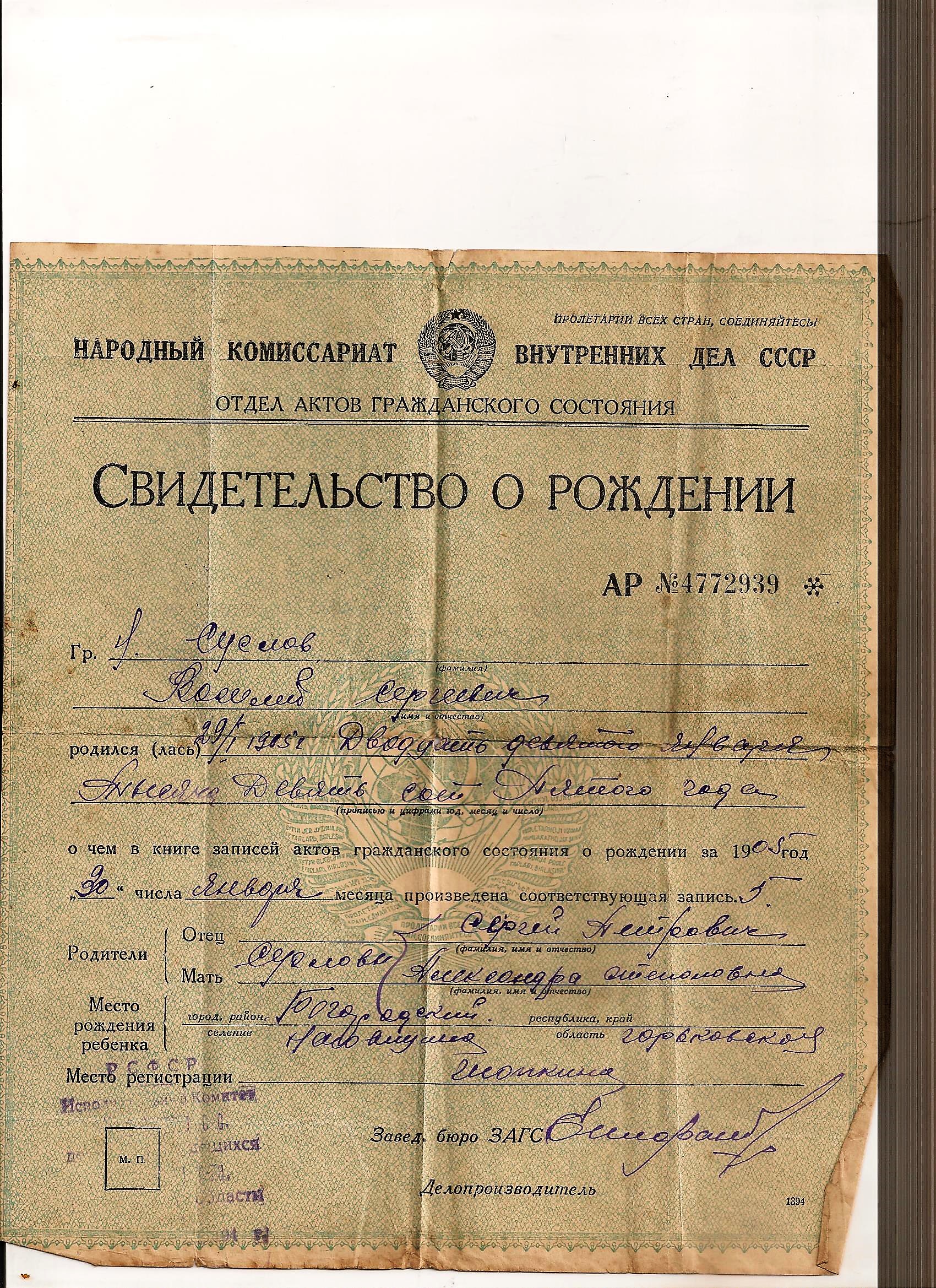 Мой второй дед Суслов Василий Сергеевич 1905 г.р. призван Трусовским РВК г.Астрахань. краснофлотец.воевал в ЧФ 8 бригада морской пехоты. Сначала пропал без вести под Севастополем, потом раненый нашелся. В 1942 году списан по ранению ,умер по дороге домой. После смерти мамы забрала все,что сохранилось -старые фотографии.Теперь есть и фотография моего деда,и даже свидетельство о его рождении... Мой дед-десантник морской -------------------- Однажды ученик спросил у Мастера: